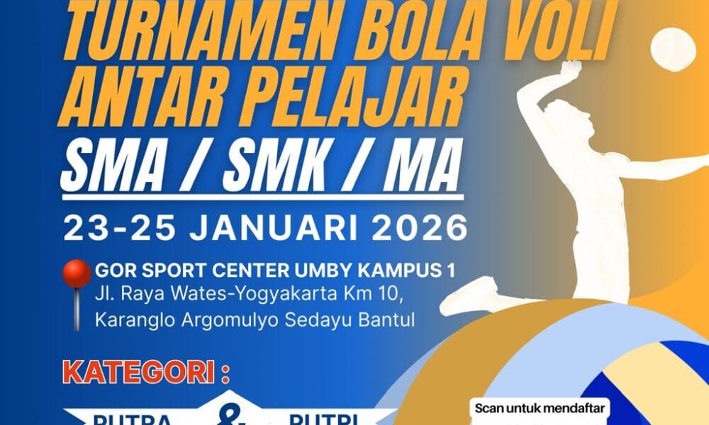 Sedayu.net — Universitas Mercu Buana Yogyakarta (UMBY) akan menggelar Mercu Buana Cup 2026, sebuah turnamen bola voli antar pelajar SMA/SMK/MA yang akan berlangsung pada 23–25 Januari 2026.